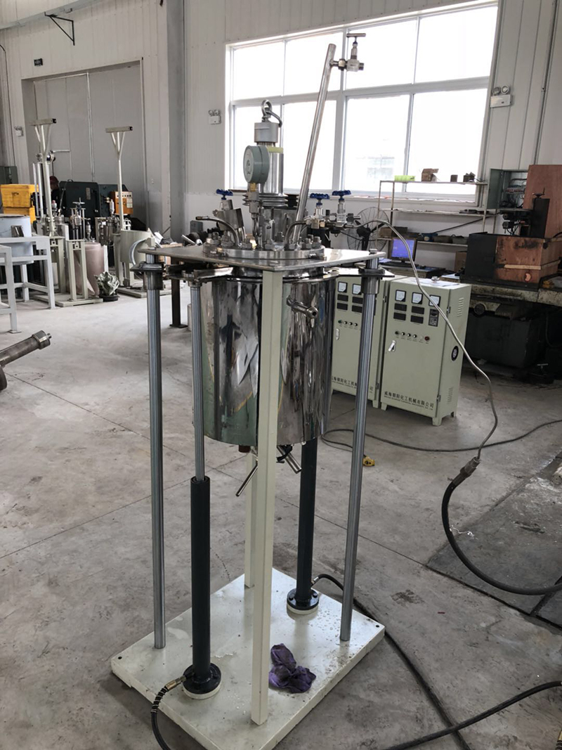 我公司為江蘇地區(qū)客戶制作的20L反應(yīng)釜。設(shè)備采用磁力驅(qū)動攪拌器配推進式攪拌槳葉,攪拌轉(zhuǎn)速為500r/min。反應(yīng)釜設(shè)計溫度達240℃,設(shè)計壓力為2.2MPa。制造材質(zhì)為不銹鋼S31603。該設(shè)備配備了冷凝回流裝置。釜內(nèi)配備冷卻水盤管。此設(shè)備釜蓋為框架固定,釜體配電動液壓裝置升降。